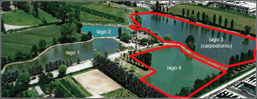 Il primo dei quattro laghi si trova immediatamente a fianco al parcheggio, sulla sinistra, si pescano trote fino a maggio e pescegatti americani, africani fino a settembre.
